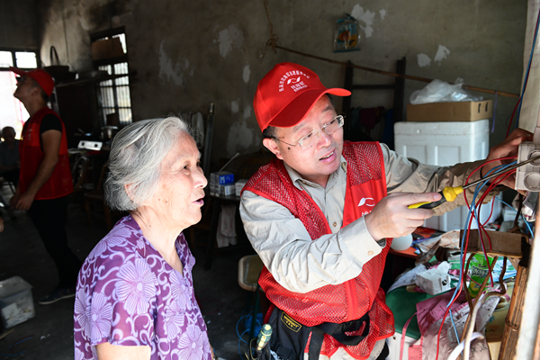 9月5日,钱海军为慈溪市观海卫镇的叶夏秀老人改造室内线路