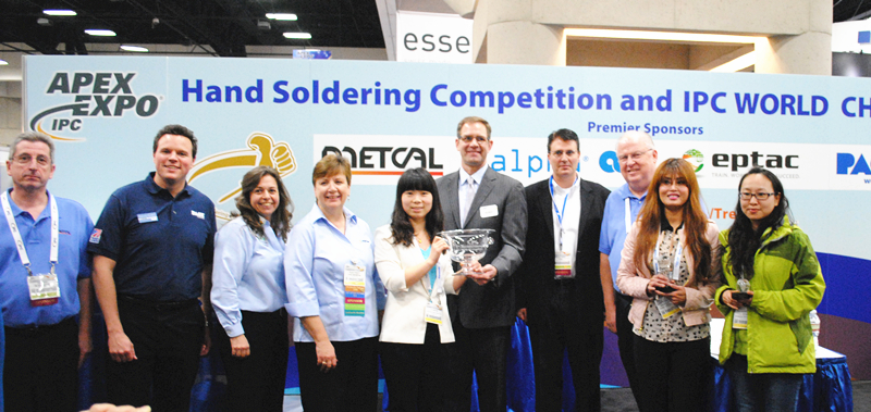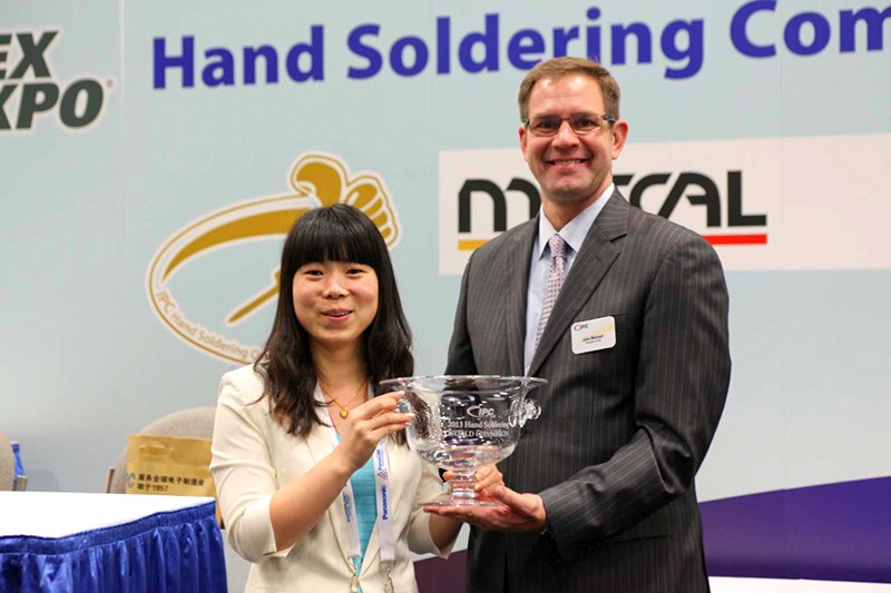 2013年国际电子工业联接协会总裁兼CEO为付春艳颁发冠军奖杯