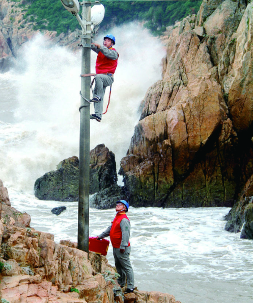 夏秋季节,肆虐的台风经常光顾大陈岛。2012年,强台风“海葵”直扑浙江,大陈岛最大风力16级,导致全岛停电。2014年,台风“凤凰”正面袭击大陈岛,岛上发生山体滑坡,严重影响输电线路安全……每次台风来袭,大陈供电所的员工们都顶风冒雨加班抢修,第一时间恢复供电。打造一张足以抵抗台风的坚强海岛电网,成了这群人的“执念”。