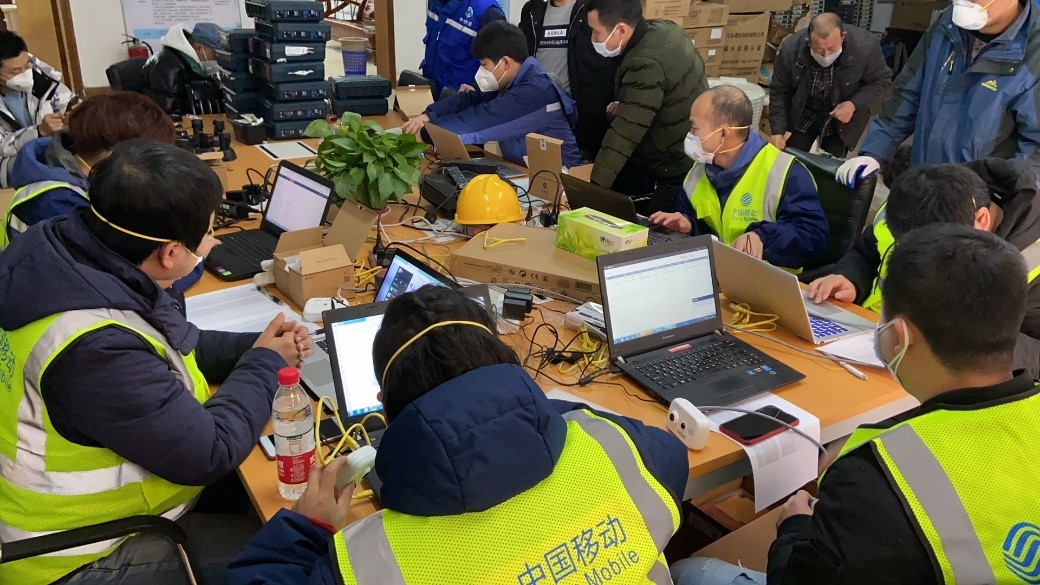 1月24日,中国移动突击队员到火神山医院开展了现场查勘工作,确定了网络建设和保障方案,除夕夜里连夜施工。