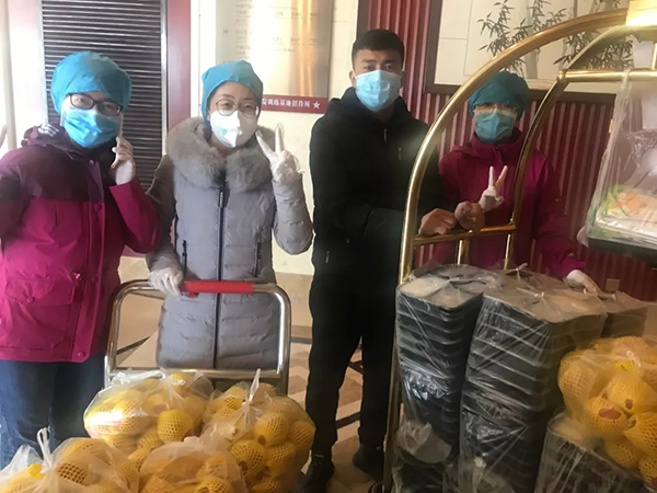 杨晓雨在酒店为援鄂医疗队发餐