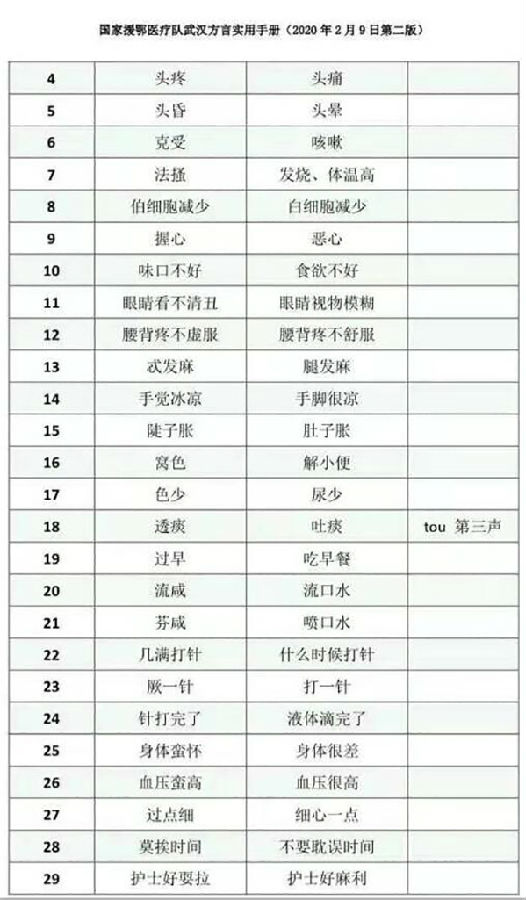 带给我感动的还有武汉本地的战友。由于方舱医院收治的大多是本地的患者,武汉的战友怕来自山西的我们听不懂方言,非常贴心地为我们准备了《国家援鄂医疗队武汉方言实用手册》,下班休息的时候我们赶紧学了起来,“过点细”是“细心一点”,“灵醒”是“好看”……武汉的战友,你们真“灵醒”!