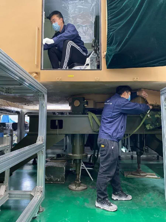 23所“空鹰”青年突击队工作的总装厂房,70%是90后青年。疫情当前,防控要求对传统的厂房作业模式产生了极大挑战,为了能够同时符合疫情防控和科学复工的要求,突击队员主动出击,对作业模式进行了创新——大型阵面、方舱作业分为上下工位式作业,小型阵面作业一人负责,“双技能”青年单独完成全部总装工作。小博和晓宏是突击队的两名年轻小伙,在保障安全间隔的同时,他们采用上下两工位同时进行方舱装配,两人分工明确、配合默契,新的厂房作业模式有力确保了两人能够高效优质地顺利完成任务。
