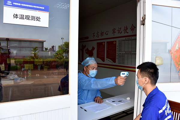 中铁十四局安哥拉项目群设置专职医生,负责采购防疫物资和药品,每天为中外员工进行体温检测