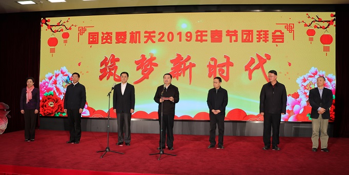 2月1日,国资委机关举办2019年新春团拜会。国资委党委书记郝鹏出席团拜会并致辞,代表国资委党委向委机关、直属单位、直管协会广大干部职工及家属致以节日问候和新春祝福。国资委党委委员,秘书长、总会计师出席团拜会。