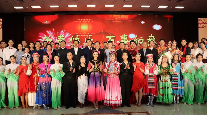 团拜会上,国资委干部职工自编自演的歌舞、三句半、音乐快板、相声、诗朗诵等节目精彩纷呈,生动反映了在以习近平同志为核心的党中央领导下,国资国企改革发展党建工作取得的丰硕成果,充分展现了国资央企广大干部职工为党和国家事业拼搏奉献的精神风貌,赢得了阵阵热烈掌声。会场欢声笑语回荡,充满了欢乐、祥和、喜庆的节日气氛。
