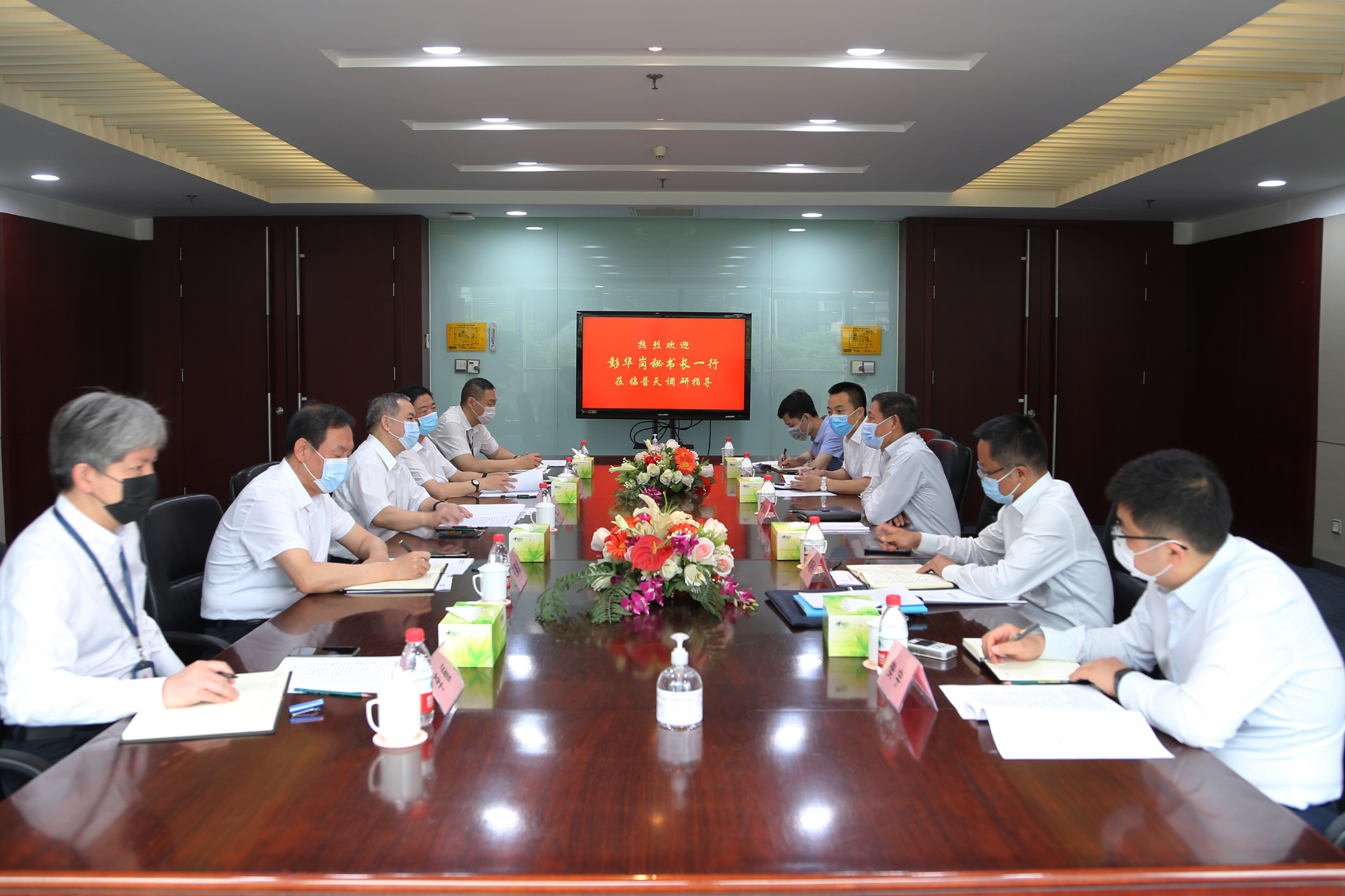 2020年5月21日,国资委党委委员、秘书长彭华岗赴中国普天调研,参观企业展厅,听取企业生产经营、改革发展和党的建设工作汇报并座谈交流。