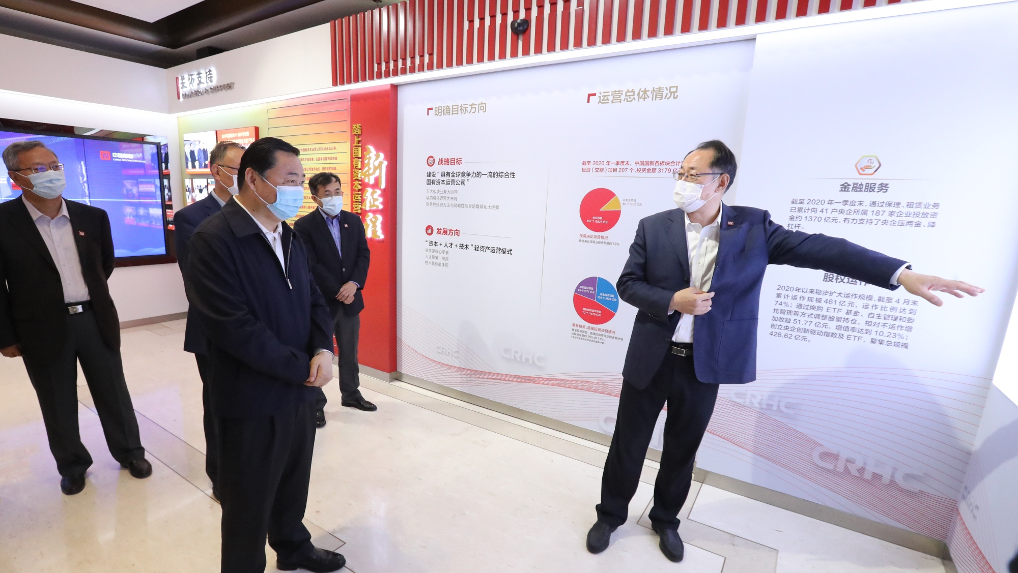 5月27日,国资委党委书记、主任郝鹏到中国国新调研企业经营发展、深化改革和党的建设等情况,强调要认真学习贯彻习近平总书记全国两会期间的重要讲话精神,贯彻落实全国两会部署要求,坚持稳中求进工作总基调,坚持新发展理念,在抓好常态化疫情防控的基础上,聚焦服务国家战略、发展实体经济等重点任务,持续深化改革创新,扎实推进国有资本运营公司试点,积极探索国有资本运营有效模式,奋力完成全年各项目标任务,为做好“六稳”工作、落实“六保”任务作出积极贡献。