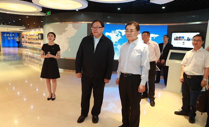 翁杰明参观了国投公司展厅,了解了国投公司的发展历程、产业结构、区域布局、重点项目、企业文化等情况。