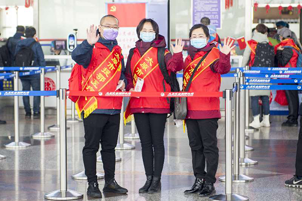 中铁十七局中心医院医护人员在机场准备出发赶往武汉。