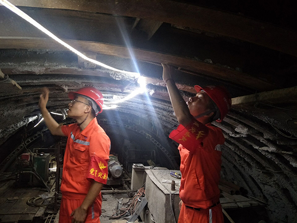 中铁十八局红缨枪党员突击队队员进行安全检查。