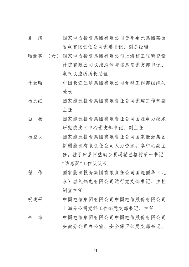 为表彰先进、弘扬正气,激励各级党组织和广大共产党员在把握新发展阶段、贯彻新发展理念、构建新发展格局中奋发有为、建功立业,国资委党委决定,授予邢继等338名共产党员“中央企业优秀共产党员”称号(含追授2名),授予王军艳等205名党务工作者“中央企业优秀党务工作者”称号,授予中国核工业集团有限公司福建福清核电有限公司党委等448个基层党组织“中央企业先进基层党组织”称号。这次表彰的优秀个人和先进集体是中央企业各条战线上的杰出代表,他们的先进事迹和崇高精神充分展示了新时代共产党人的先进性和纯洁性,生动诠释了中央企业共产党员的初心和使命,彰显了国有企业先进精神的无穷伟力。