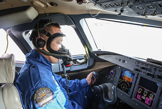 高原氧气稀薄,飞行员戴着氧气面罩飞行