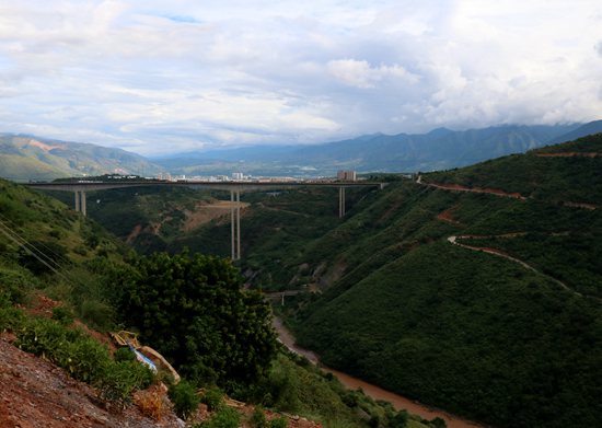该桥位于云南省元江县境内,是我国首次建造的大跨度上承式连续钢桁梁铁路桥,全长832.2米,有6个桥墩,其中最高的3号桥墩高154米,相当于54层楼房的高度,位居该类桥梁世界第一。主桥采用上承式连续钢桁梁,以悬臂拼装的方式从桥梁两端向中部延伸,其中249米的上承式连续钢桁梁主跨,将创世界同类铁路桥梁建设之最。