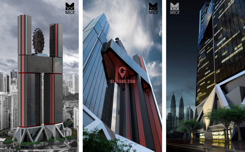 据悉,该项目位于马来西亚吉隆坡市中心,距离双子塔仅2.9公里,总建筑面积约20万平方米,合同额约合2.14亿美元。“M101”项目名称源于其造型设计,项目地下和裙楼部分为“M”造型,底层设有地铁站;A、B两座塔楼部分和建在之间的摩天轮,形成“101”造型。