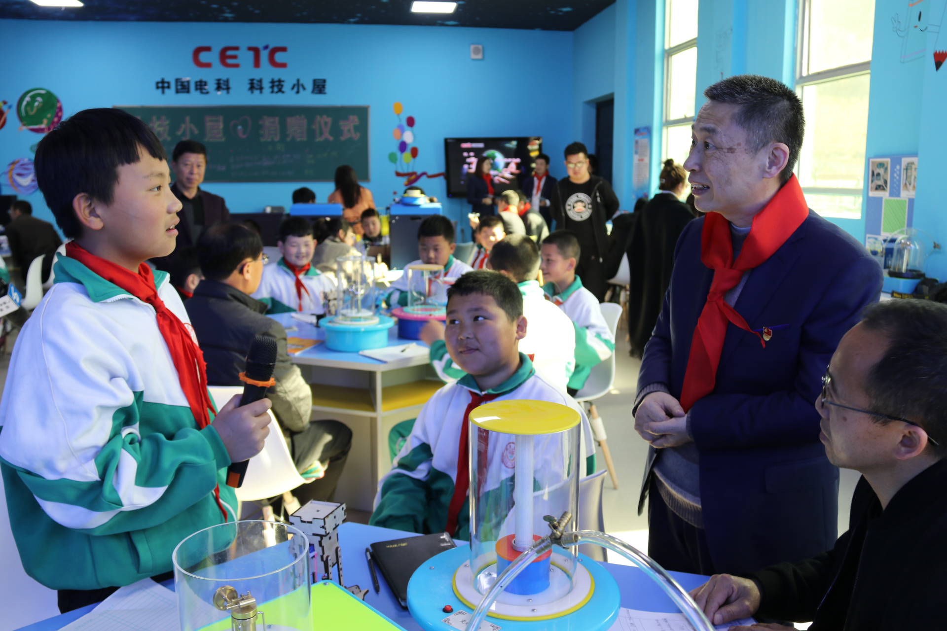 中国电科注重打造“科技+教育”扶贫样板,在陕西绥德和四川叙永分别援建“科技小屋”试点项目,组织中国工程院院士、中国电科首席科学家陆军赴“科技小屋”上科学课,每年组织陕西绥德、四川叙永、福建长汀三地贫困学生开展“点燃科技梦想”夏令营,帮助贫困学子学习科学知识、感受科技魅力,以实际行动践行习近平总书记提出的“扶贫先扶志、扶贫必扶智”理念。