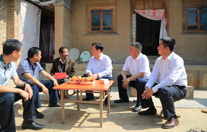 中国中车集团公司董事长、党委书记刘化龙(右三)在甘肃省甘谷县走访建档立卡户