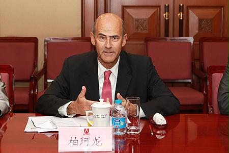 柏珂龙先生介绍了阿尔斯通在华发展情况及与中国中央企业的合作情况。他提出,阿尔斯通计划扩大在华投资,希望能与中央企业建立长期的合作伙伴关系,在巩固国内市场份额的基础上共同开发国际市场业务。