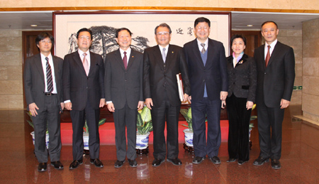4月7日,国务院国资委主任李荣融会见了日本经济新闻社社长喜多恒雄一行。