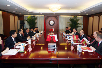 1月25日,国资委副主任黄淑和在委内会见了波兰国库部副部长兼国务秘书咖富力克一行。波兰驻华大使霍米茨基和波兰铜业集团董事长维特参加会见。咖富力克介绍了波兰国有企业私有化工作的进展,对国资委的有效监管和中央企业应对金融危机取得的良好业绩表示赞赏,并希望更多的中国国有企业到波兰投资。黄淑和指出,中国五矿集团与波兰铜业的合作富有成效,国资委支持更多中央企业与波兰企业加强合作,并强调两国企业的合作应坚持真诚合作、双方互需、互利双赢、立足长远四条原则。双方还就两国国有企业改革与发展有关问题广泛交换了意见。