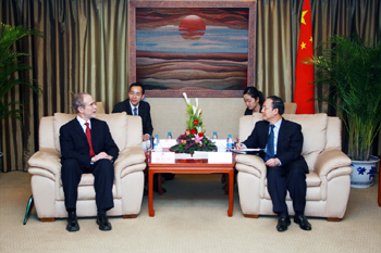 3月23日,国务院国资委副主任金阳在我委会见了美国杜克大学副校长斯坦德博士一行。双方就加强国资委与杜克大学的合作,更好地帮助中央企业培养人才等问题交换了意见。
