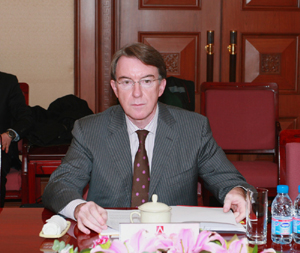 11月26日,国务院国资委主任李荣融在委内会见了欧盟欧洲委员会贸易委员曼德尔森一行。