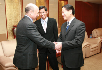 1月11日,国务院国资委主任李荣融在国资委会见了美国高盛集团董事长兼首席执行官贝兰克梵一行。