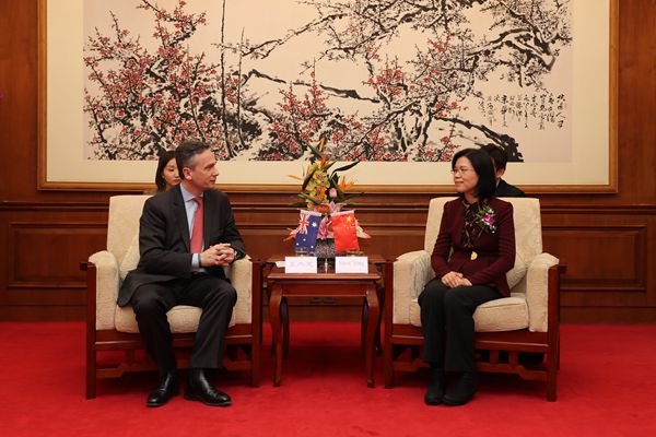 2017年11月23日,国资委总会计师沈莹在钓鱼台国宾馆会见力拓集团首席执行官夏杰思。