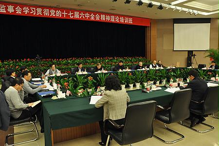 参加培训班的同志认真学习了胡锦涛同志在党的十七届六中全会上的重要讲话,《中共中央关于深化文化体制改革推动社会主义文化大发展大繁荣若干重大问题的决定》及辅导读本,深入领会国资委主任、党委书记王勇同志在直属机关理论培训班动员大会上的重要讲话精神。孟建民主持并听取了监事会工作局以及各办事处主要负责人关于2011主要工作情况及2012年工作安排的汇报,监事会主席对相关办事处的工作进行了点评。为加强工作交流,有关办事处负责人汇报了2011年度开展集中重点检查、境外资产检查以及经济责任审计工作情况。