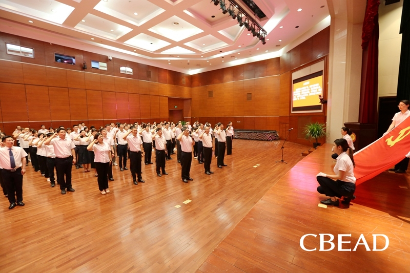 “我志愿加入中国共产党,拥护党的纲领,遵守党的章程,履行党员义务,执行党的决定,严守党的纪律,保守党的秘密,对党忠诚,积极工作,为共产主义奋斗终身,随时准备为党和人民牺牲一切,永不叛党。”面对鲜红的党旗,全体党员整齐列队,高举右拳,共同重温入党誓词。高亢洪亮、铿锵有力的誓言响彻全场,再一次激励大家不忘初心、牢记使命,坚定理想信念,永葆政治本色。