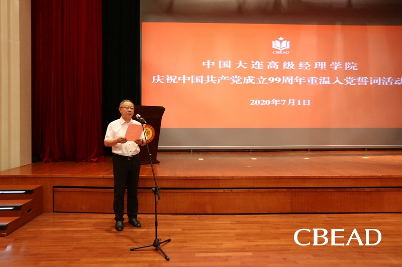 为庆祝中国共产党成立99周年,引导全院广大党员铭记党的光辉历程,发扬党的优良传统和作风,不忘入党初心,牢记职责使命,7月1日,中国大连高级经理学院开展庆祝中国共产党成立99周年重温入党誓词活动。学院党委副书记、常务副院长董大海,副院长谈越,党委副书记、纪委书记张之广,全体党员参加活动,入党积极分子列席,活动由董大海主持。