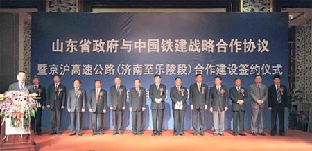 9月25日,中国铁建与山东省人民政府战略合作协议暨京沪高速公路(济南至乐陵段)合作建设签约仪式在济南举行。