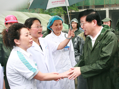 5月25日,受国务院国资委主任李荣融的委托,国务院国资委副主任李伟前往地处四川省都江堰市受灾严重的中国水利水电建设集团公司十局,慰问受灾职工。