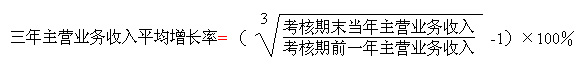 2. 三年主营业务收入平均增长率是指企业主营业务连续三年的平均增长情况。计算公式为: