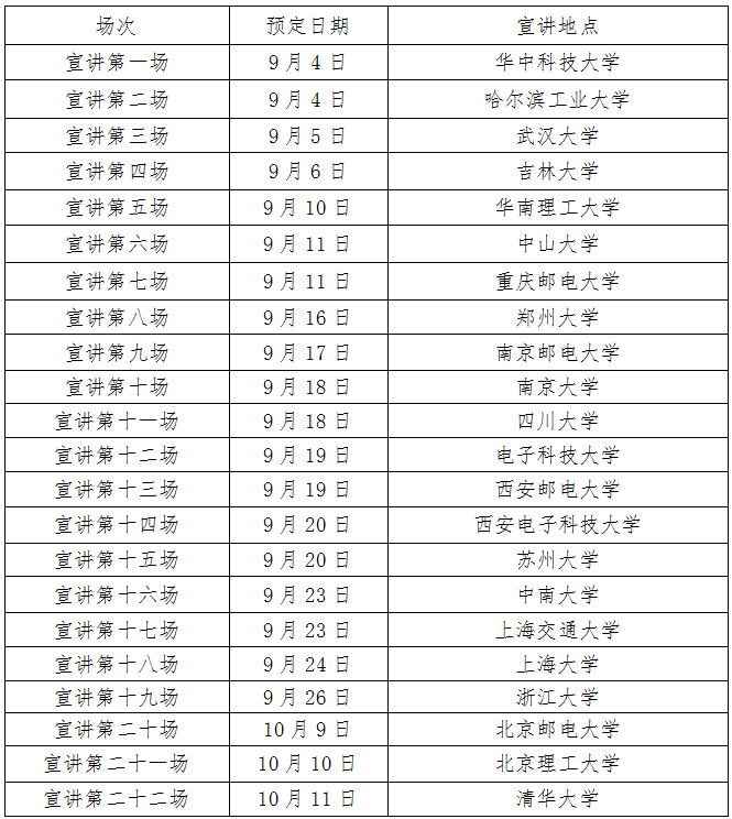 校园宣讲行程若有变动调整,请以校园招聘官方网站公告行程为准!