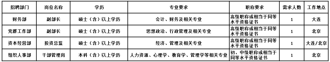 现因工作需要,对集团总部职能部门岗位进行集团内外部公开招聘,具体公告如下: