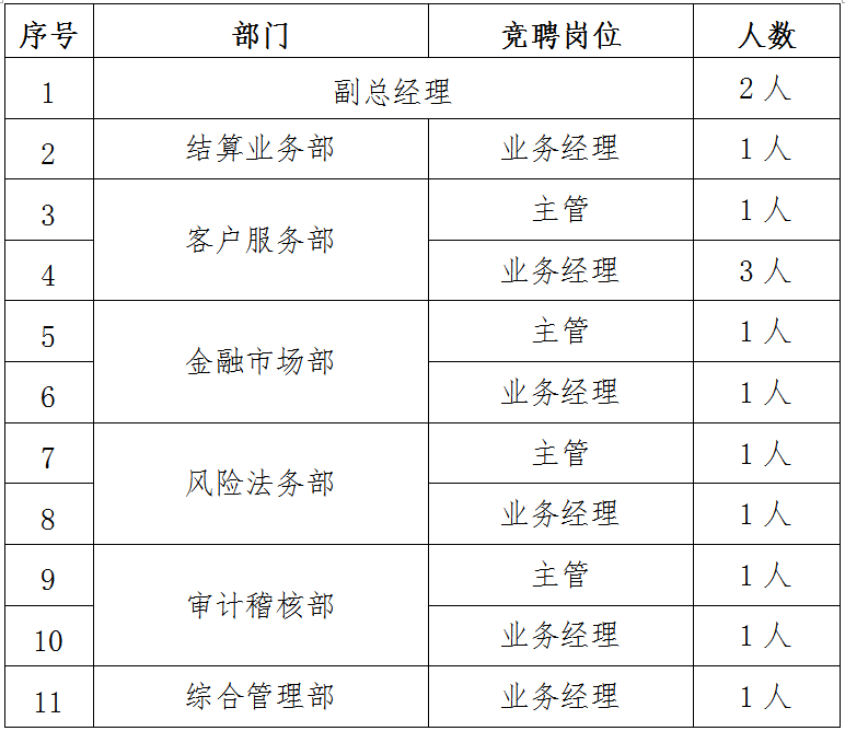 1.具有6年以上银行支行副行长(同职级)或财务公司部门主管的工作经历。