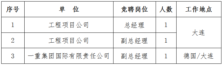 一重集团大连工程技术有限公司是中国第一重型机械股份公司的全资子公司,国家高新技术企业。始终致力于为用户提供高端装备设计制造、技术集成、设备成套、工程总承包服务等全面系统解决方案,面向重型装备行业的能源、矿山、交通、冶金、核电、石化等领域,拥有设计研发、工程咨询、工程设计、工程建设、项目管理能力和完善的服务管理体系。现面向社会和公司内部公开招聘部分所属单位领导岗位,有关事项公告如下: