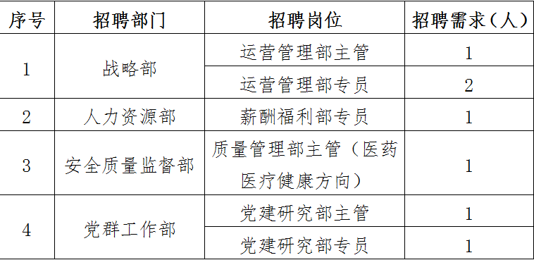 (四)安全质量监督部质量管理部主管(医药医疗健康方向)