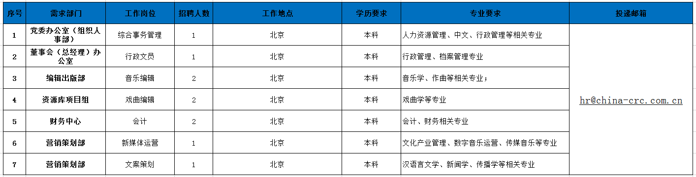 咨询电话:13439802570 邮箱地址: hr@china-crc.com.cn