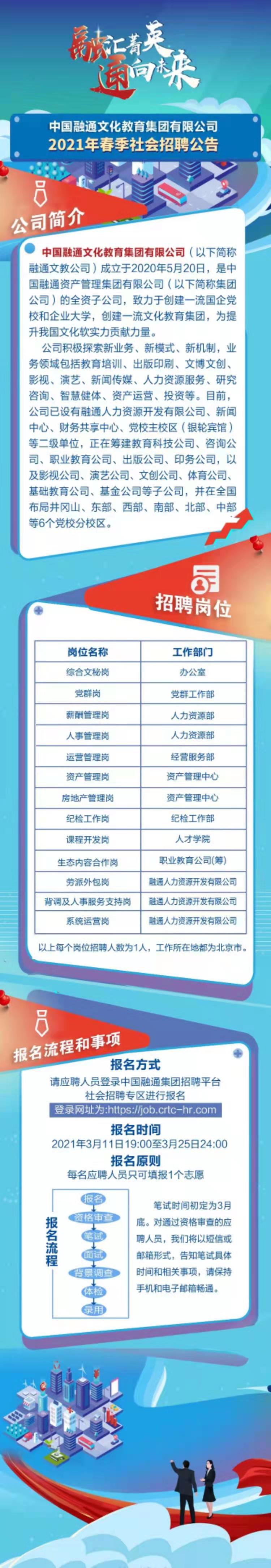 中国融通文化教育集团有限公司2021年春季社会招聘公告