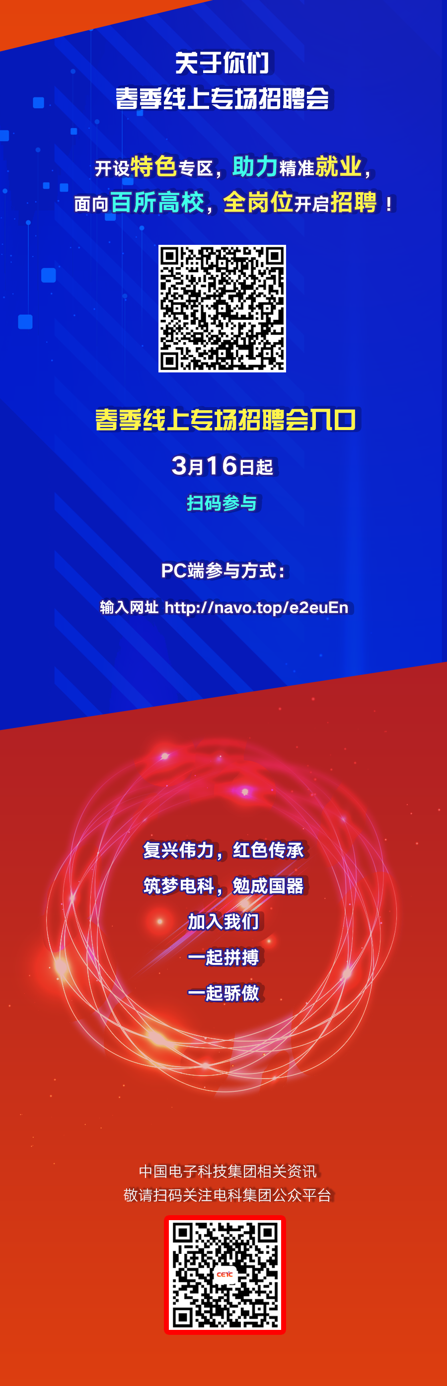 春已至,万物始。中国电科2021春季校园招聘正式启动。
