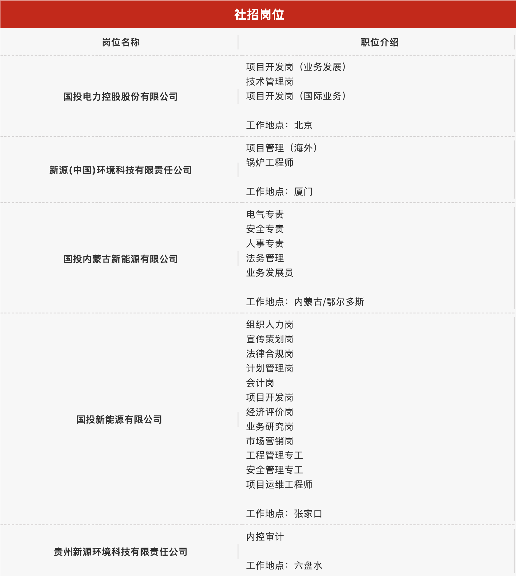 国投电力是一家主要从事电力行业投资与管理的沪市上市公司,股票代码600886。现国投电力及旗下公司开启社招、校招工作,报名截止时间为2021年4月7日,详情可登录国聘官网 www.iguopin.com,在搜索框内选择“校招”或“社招”输入企业名称进行搜索。
