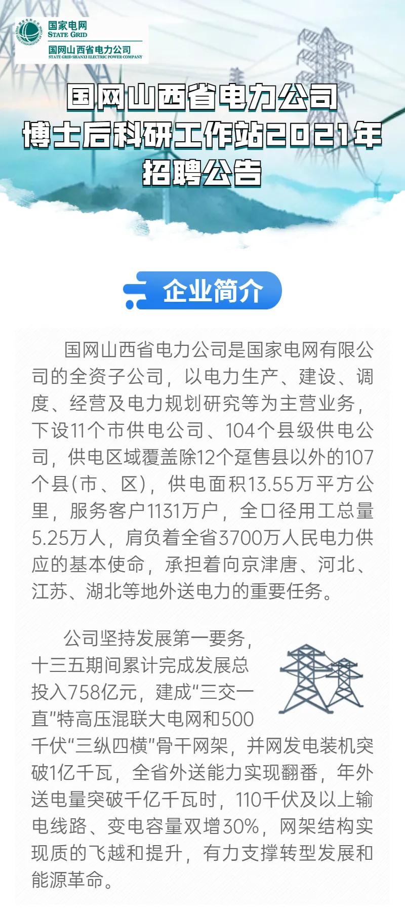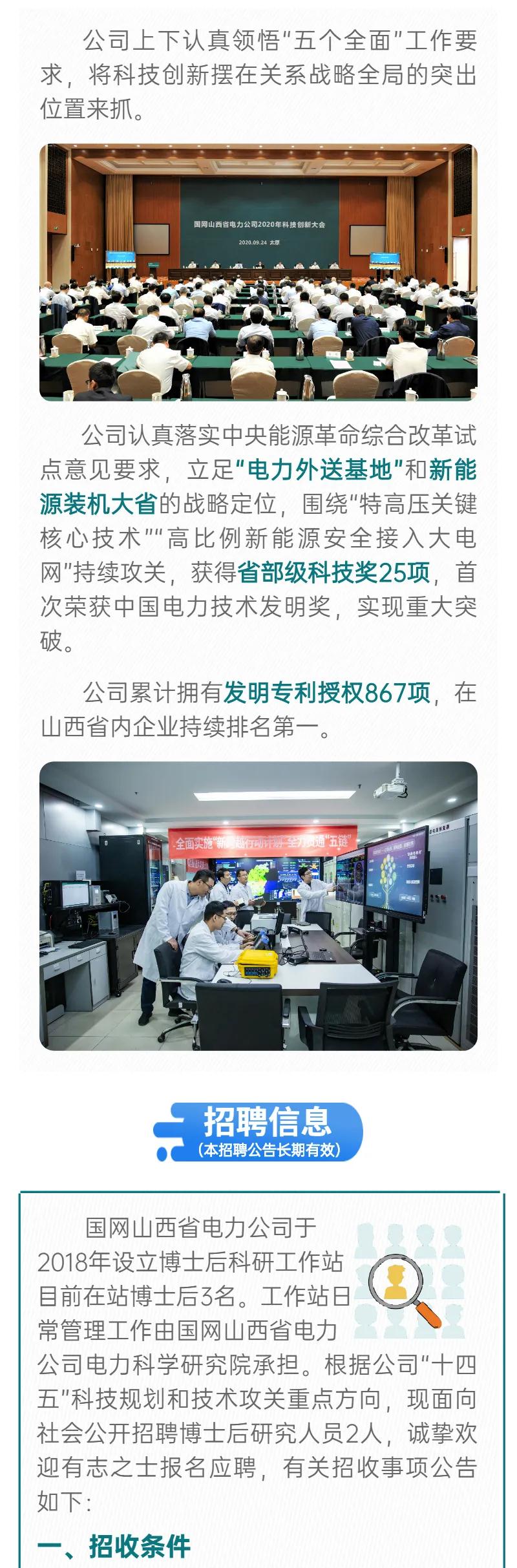 国网山西省电力公司博士后科研工作站2021年招聘公告