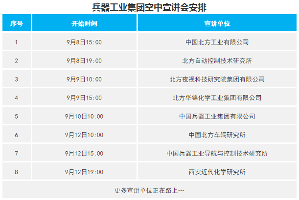 受疫情影响,各高校线下招聘会行程时间待定,具体安排请关注“中国兵器校园招聘平台”或微信公众号“中国兵器招聘”,详细信息后续将第一时间在此发布。