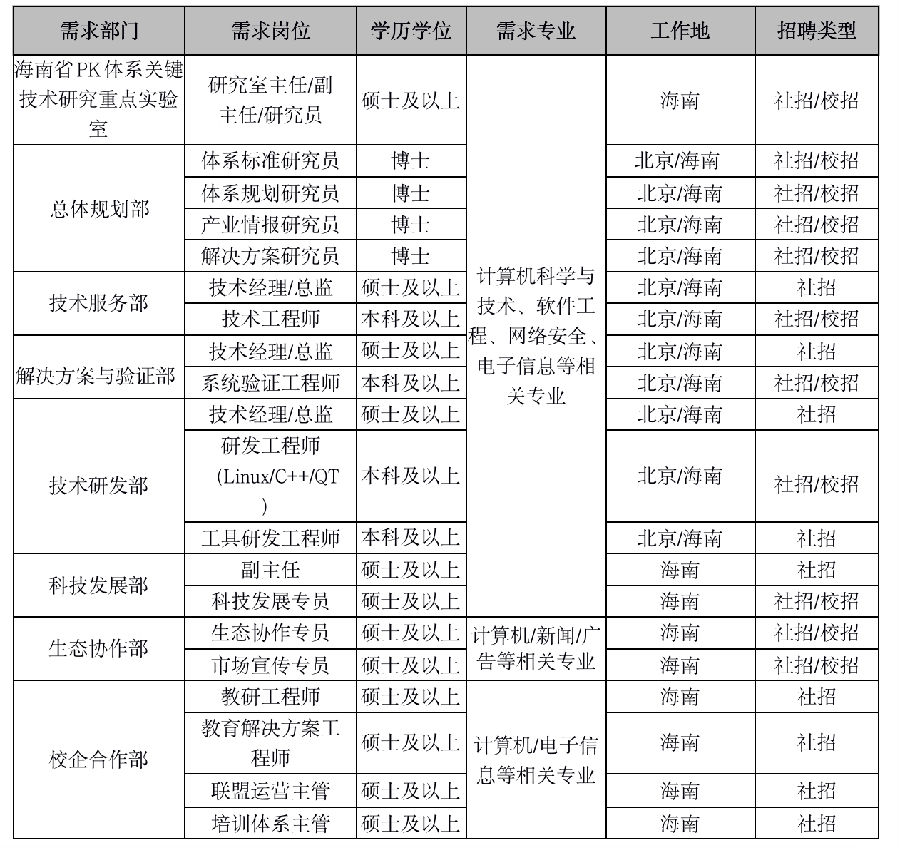 中电(海南)联合创新研究院有限公司(简称中电创新院)成立于2019年9月,位于海南自由贸易港生态软件园,是中国电子信息产业集团(简称中国电子)直属企业和中国电子网信产业技术创新的重要载体。2022年通过高新技术企业认定,并纳入国务院国资委科改示范企业,拥有海南省PK体系关键技术研究重点实验室,主要负责PKS体系技术研发及应用【PKS体系指基于自主的飞腾(Phytium)中央处理器(CPU)和麒麟(Kylin)操作系统(OS),具有双体系防护结构,具备内生内置安全能力的架构体系】,牵头PKS体系规划论证、组织开展PKS体系产业生态建设、解决PKS体系重大工程问题。通过开展与区块链、大数据、人工智能等前沿技术融合创新,实现PKS体系技术创新,引领网信产业升级。