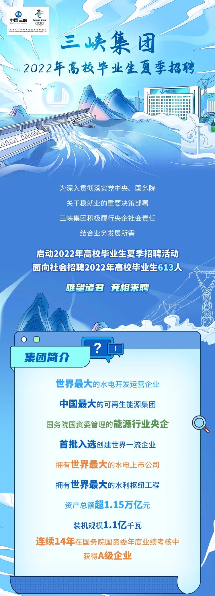 三峡集团2022年高校毕业生夏季招聘公告