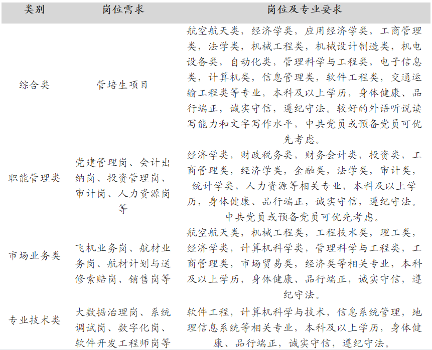 根据人力资源战略规划,中国航材计划招聘2023年应届高校毕业生,招聘岗位及需求如下: