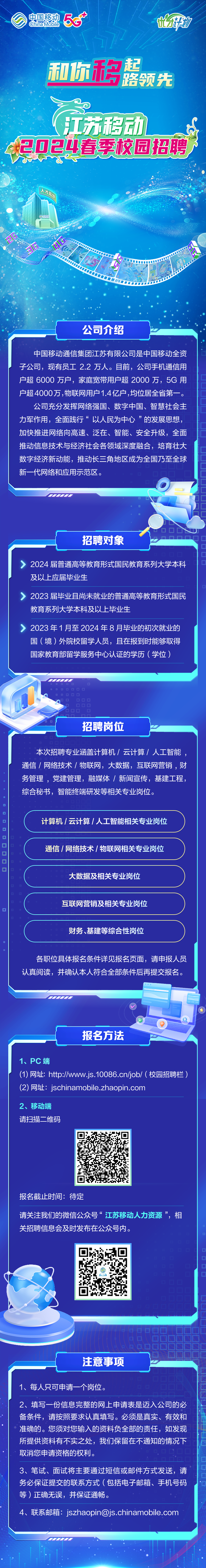 中国移动江苏公司2024春季校园招聘公告