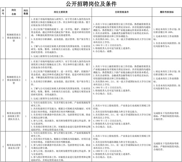 鞍钢资本所属鞍钢集团成都融资租赁有限公司(以下简称鞍钢租赁)高级业务管理岗位: